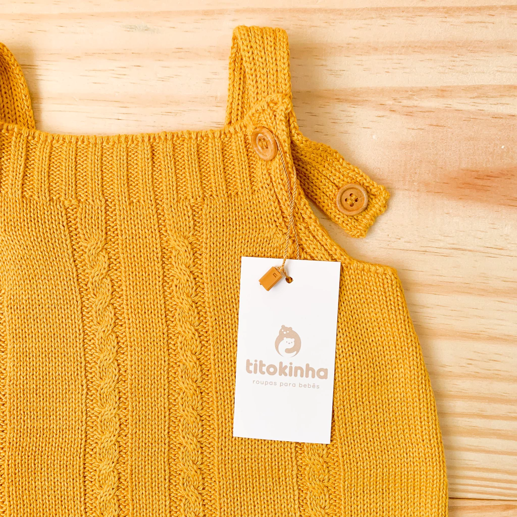 Macacão jardineirinha em tricot de linha, leve e confortavel.