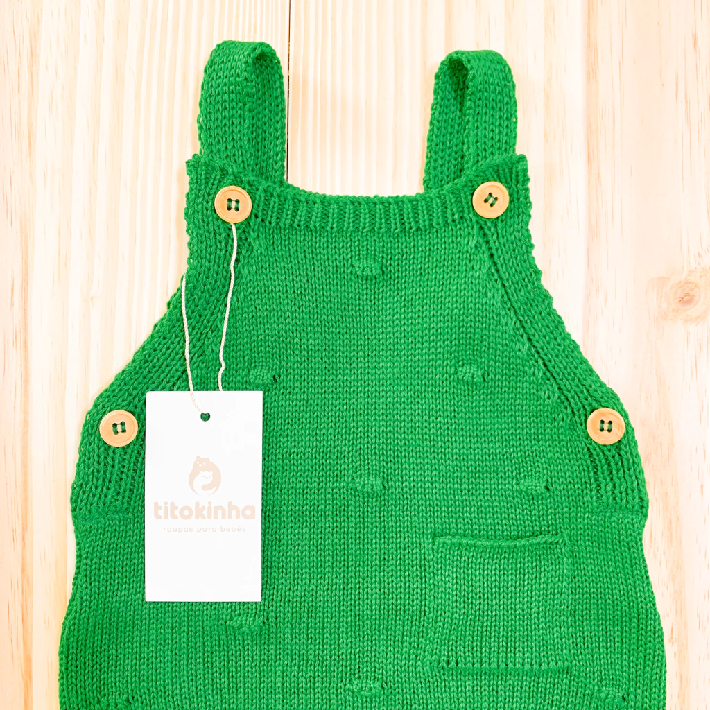 Romper jardineira todo em tricot de linha, todo leve e confortável.