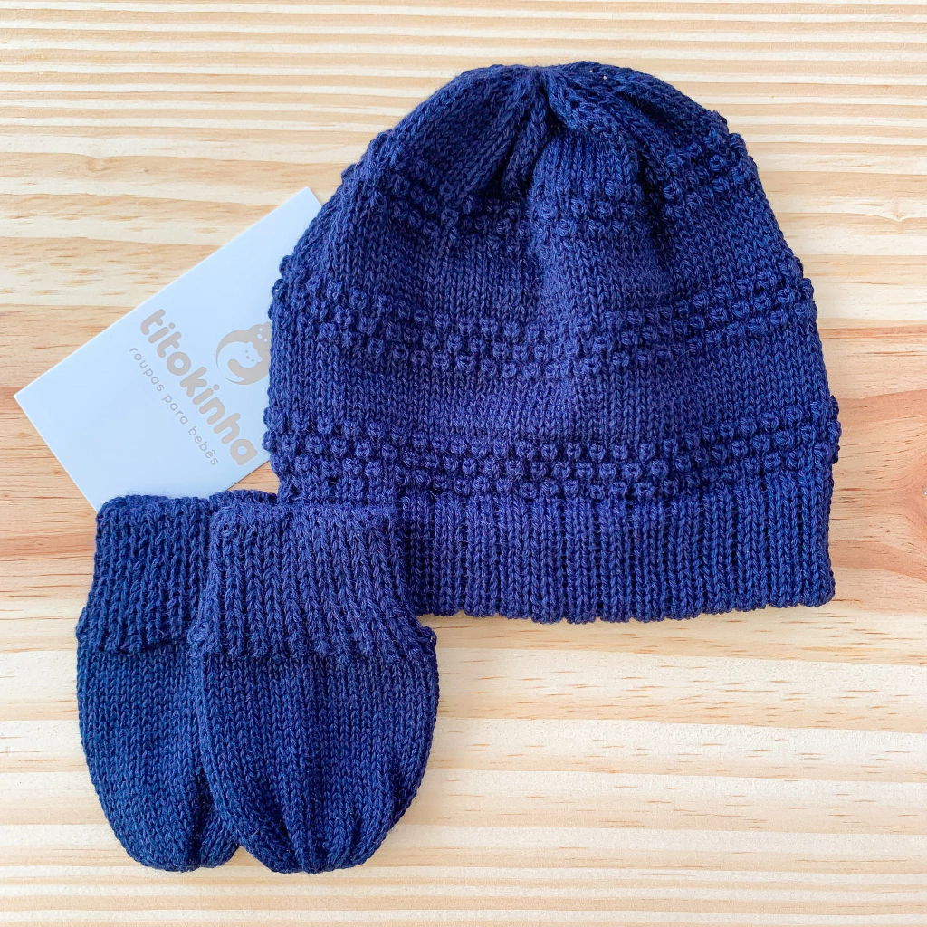 Touca e luva básica azul marinho